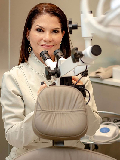 Dra. Viviane, especialista em Endodontia, realiza tratamentos de canal com o auxílio de microscópio operatório, o que permite maior precisão, segurança e visualização detalhada das estruturas internas do dente. Além disso, utiliza isolamento absoluto, técnica fundamental para manter o campo operatório livre de contaminação, garantindo um tratamento mais seguro, eficaz e com melhores resultados para o paciente.
